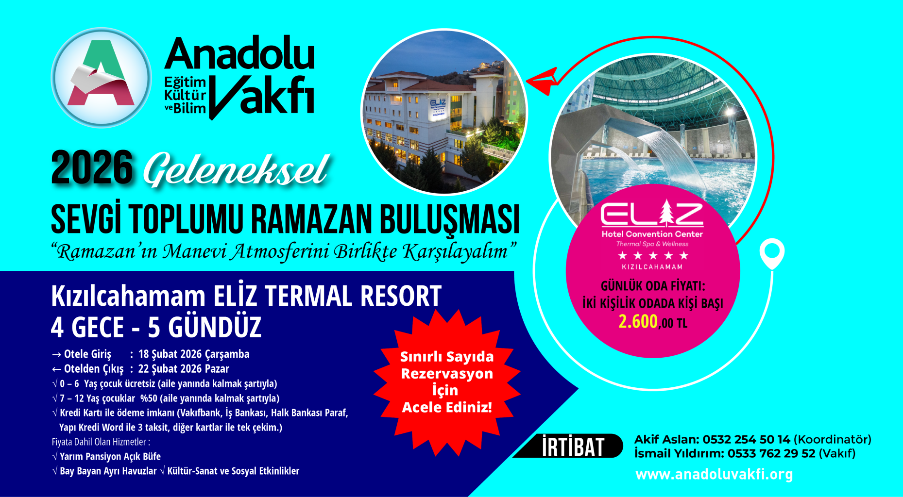 Anadolu Vakfı 2026 Yılı Geleneksel Sevgi Toplumu Ramazan Buluşması 18 Şubat'ta Kızılcahamam'da Başlayacak