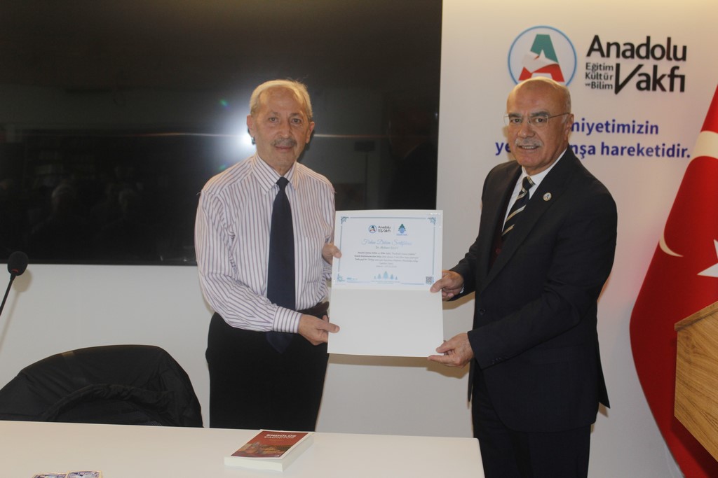 Program sonunda Dr. Mehmet Sılay’a, adına dikilen 5 adet fidan sertifikası ile Vakfımız Anadolu Ay Yayınlarından oluşan kitap seti, Vakıf Yönetim Kurulu Başkanı Abidin Memili tarafından takdim edildi. Dr. Sılay da kendi kaleme aldığı “Endülüs Çağırıyor” adlı kitabını Vakıf Yönetim Kurulu Başkanımıza hediye etmesiyle program sona erdi.