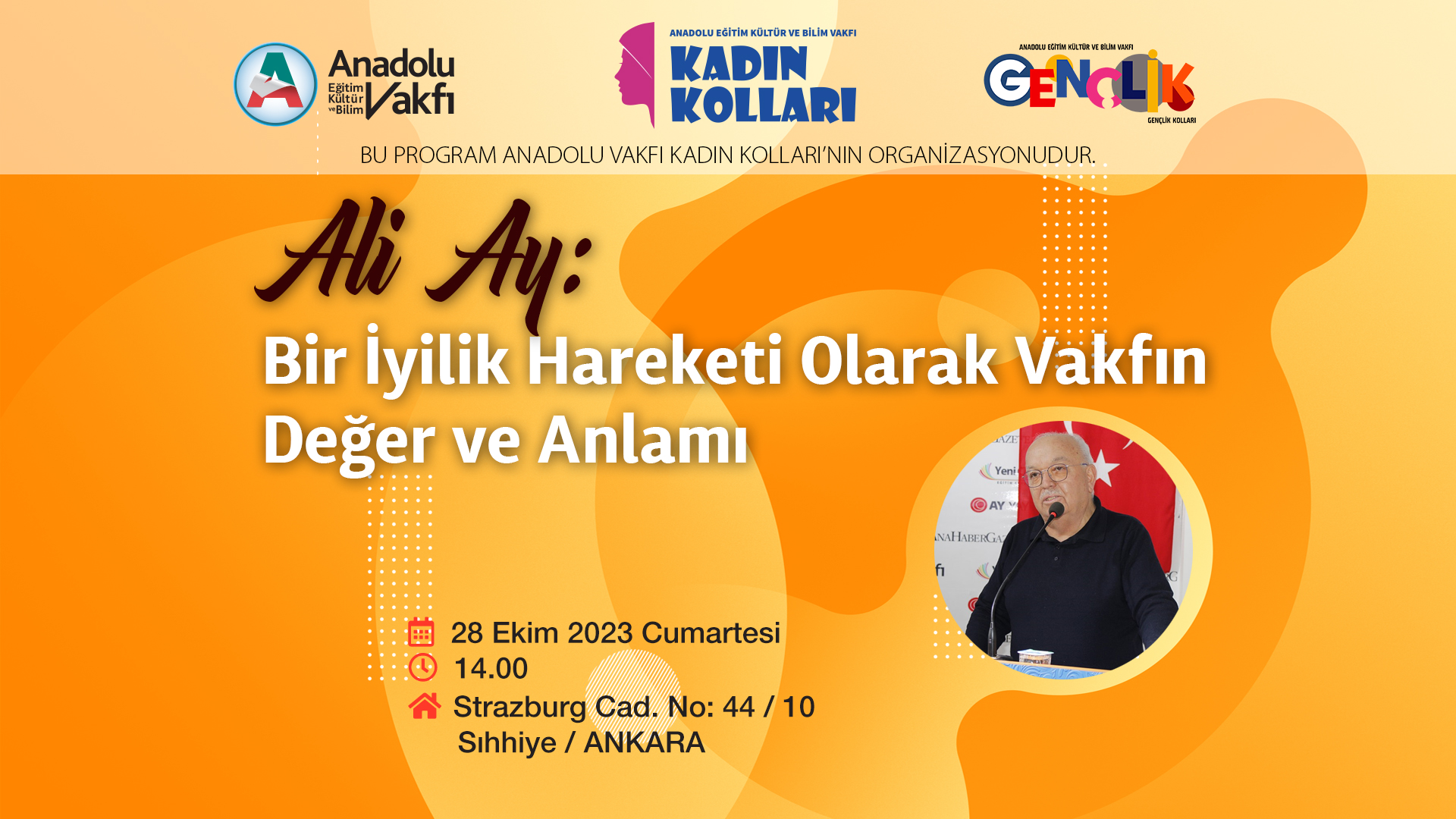 İslam coğrafyasında kurulan Vakıfların İslam medeniyetinin temelini oluşturduğunu vurgulayarak sürdürdüğü konuşmasında Ali Ay; Vakıfların iyilik hareketi olarak okul, çeşme, köprü, imarethane gibi toplumun ihtiyaç duyduğu hizmetlerin topluma kazandırılmasına öncülük ettiğini, her Vakfın mutlaka tespit edilmiş bir kuruluş amacının olduğunu, bu amacı gerçekleştirmesi doğrultusunda çalışması gerektiği belirterek vakfın ana sözleşmesi çerçevesinde aralıksız olarak faaliyetlerini sürdürdüklerini vurguladı. Anadolu Eğitim Kültür ve Bilim Vakfı’da 30 yılı aşkın süredir gönüllüleriyle birlikte amaclarına uygun olarak hizmetlerine devam ettiğini söyledi.