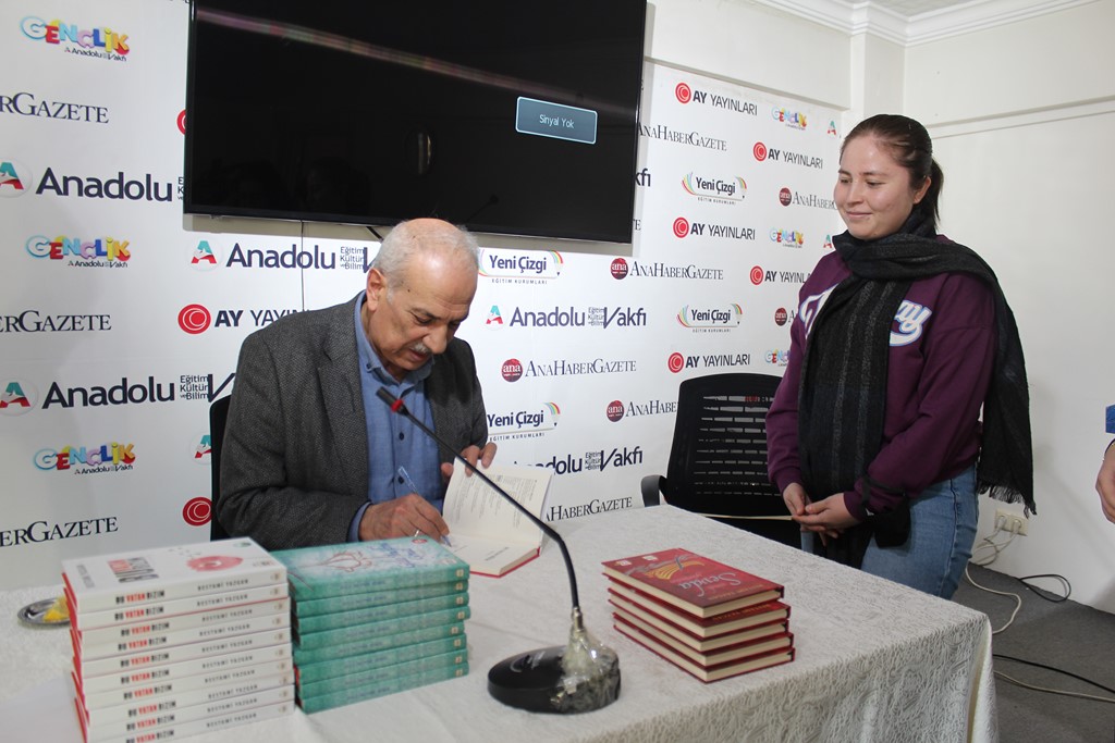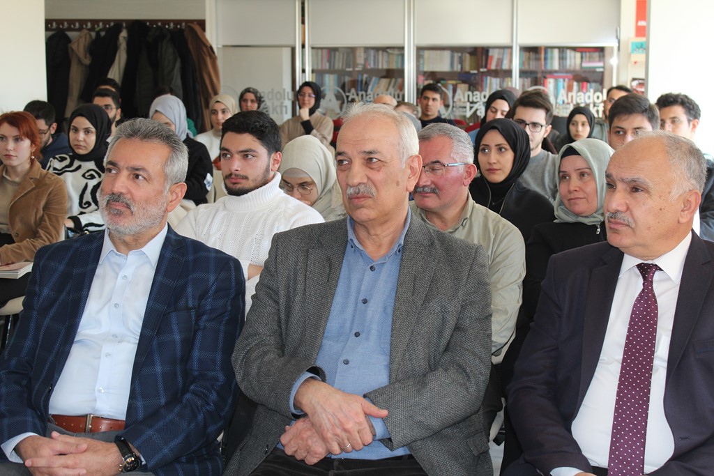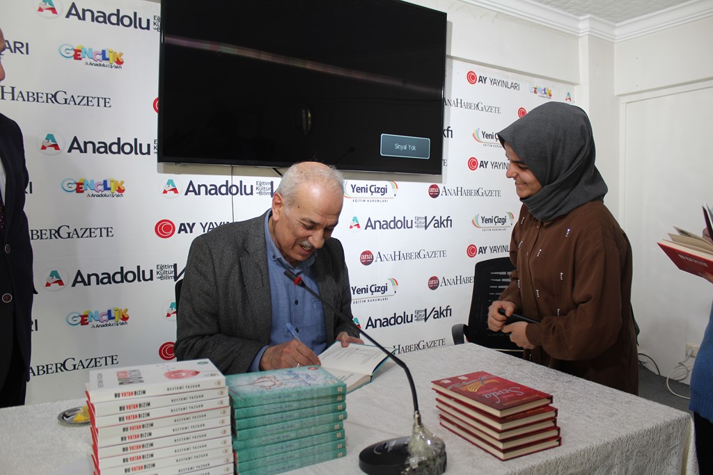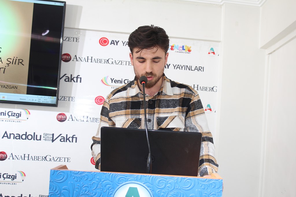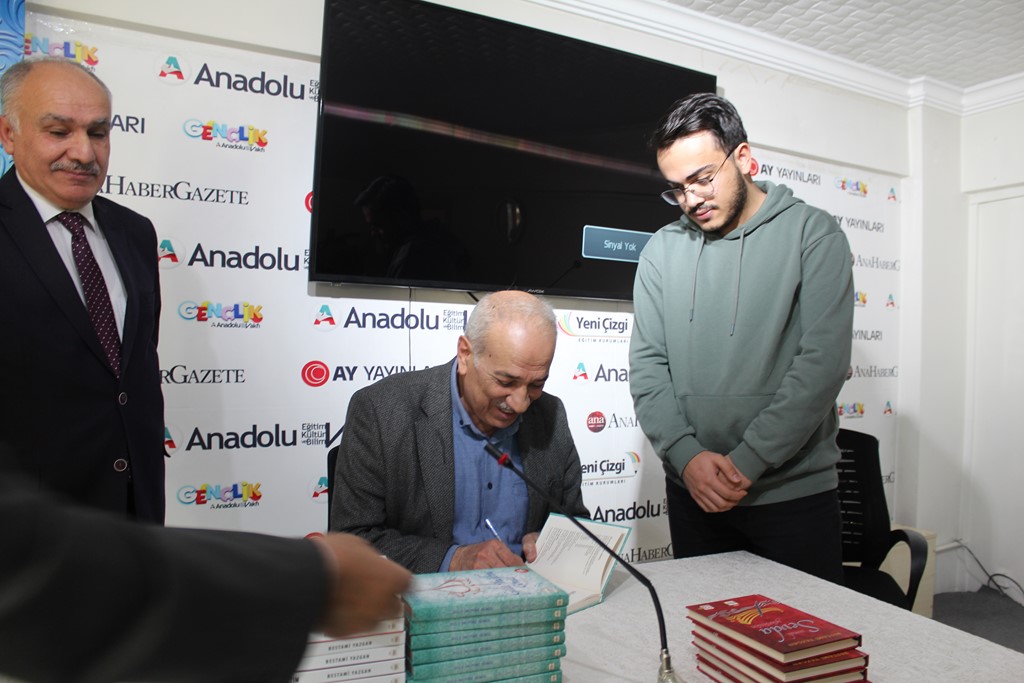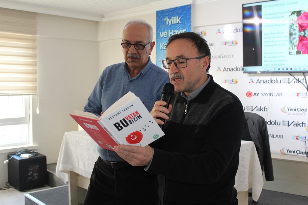 Dr. Osman Arslan, Bestami Yazgan’la tanışıklıklarının lise yıllarına dayandığını hatırlatarak, onun şiir serüvenine şahit olduğunu ve Anadolu Vakfı ocağından yetişmiş olmasıyla her zaman büyük bir gurur duyduğunu dile getirdi. Özgeçmişi okunarak gençlere tanıtılan Bestami Yazgan ise söyleşisine, meşhur selamlama şiirlerinden “Sevenlere Selam Olsun” ile başladı: