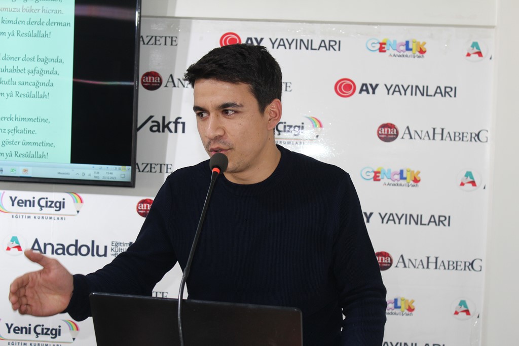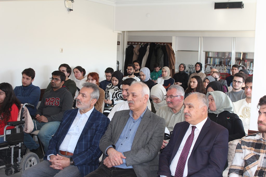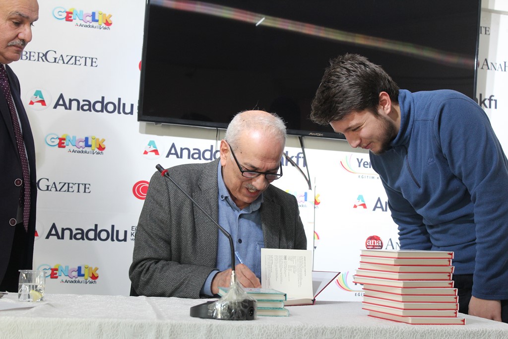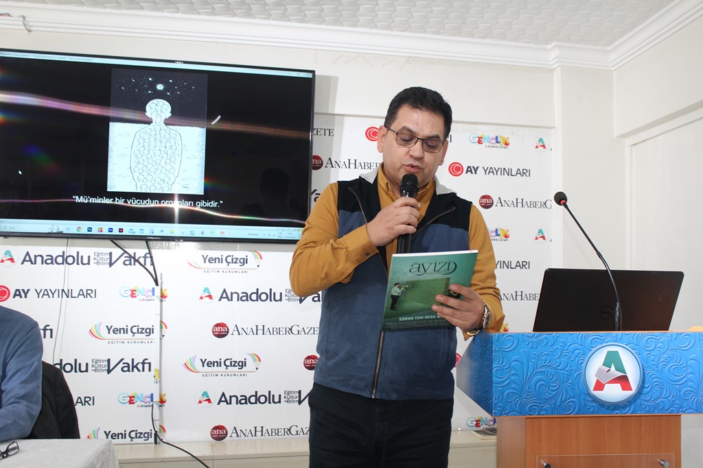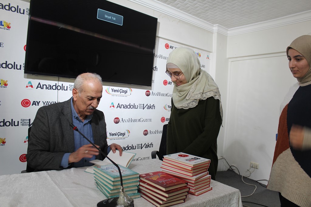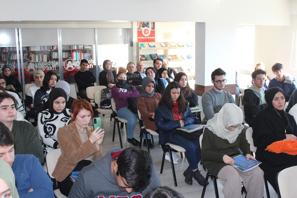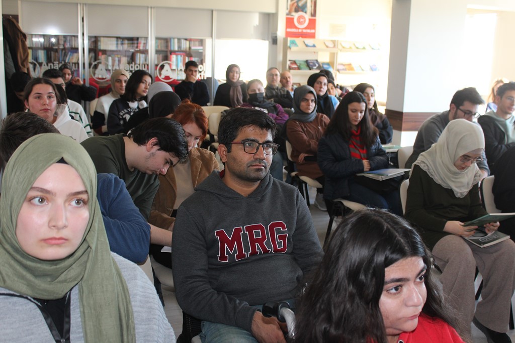 Dr. Osman Arslan, Bestami Yazgan’la tanışıklıklarının lise yıllarına dayandığını hatırlatarak, onun şiir serüvenine şahit olduğunu ve Anadolu Vakfı ocağından yetişmiş olmasıyla her zaman büyük bir gurur duyduğunu dile getirdi. Özgeçmişi okunarak gençlere tanıtılan Bestami Yazgan ise söyleşisine, meşhur selamlama şiirlerinden “Sevenlere Selam Olsun” ile başladı: