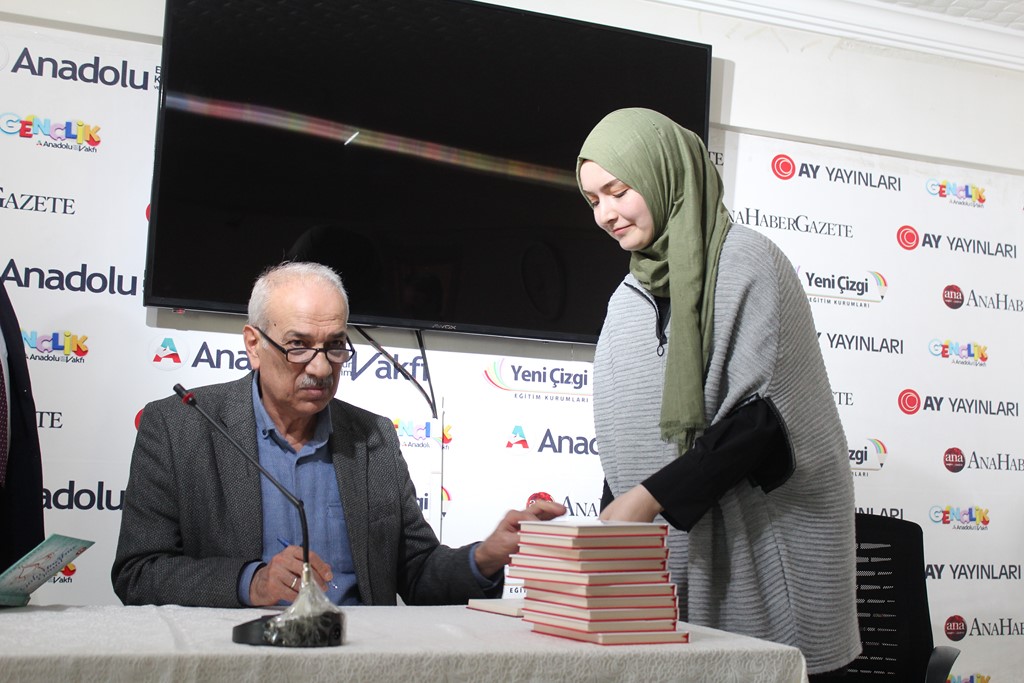 Programın sonunda, Anadolu Eğitim Kültür ve Bilim Vakfı Gençlik Kolları Başkanı Emrah Arslan, bir teşekkür konuşması yaparak gençlik faaliyetleri hakkında kısa bir bilgi verdi. Bestami Yazgan’a günün anısına, Ay Yayınlarından ve Ayizi dergisinden oluşan hediyeyi, Vakfın Yönetim Kurulu Başkan Yrd. Adnan Yıldırım; Yönetim Kurulu Üyesi Hayrettin Yücel; Şair, Yazar, Bürokrat Dr. Osman Arslan ve Şair, Yazar, Eğitimci Muhterem Şahin birlikte takdim ettiler. Toplu fotoğraf çekiminin akabinde Bestami Yazgan, kitaplarını gençler için imzaladı.
